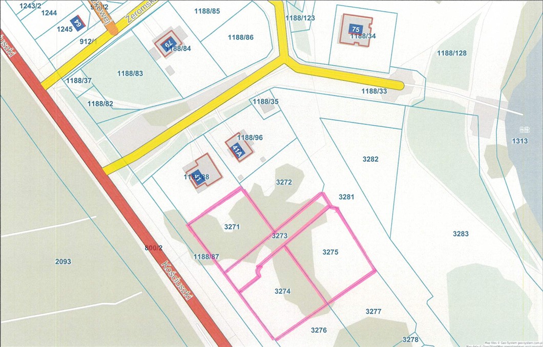 nr geod. 3275 o powierzchni 0,1130 ha wraz z udziałem w wysokości ¼ w działce nr geod. 3273 o pow. 0,0552 ha stanowiącej drogę wewnętrzną - cena wywoławcza netto 271 200,00 zł, wadium - 27 000,00 zł;